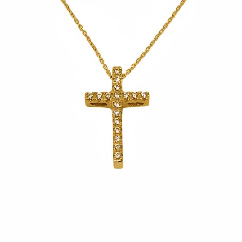 CRUZ Y CADENA DE ORO CON CIRCONITAS