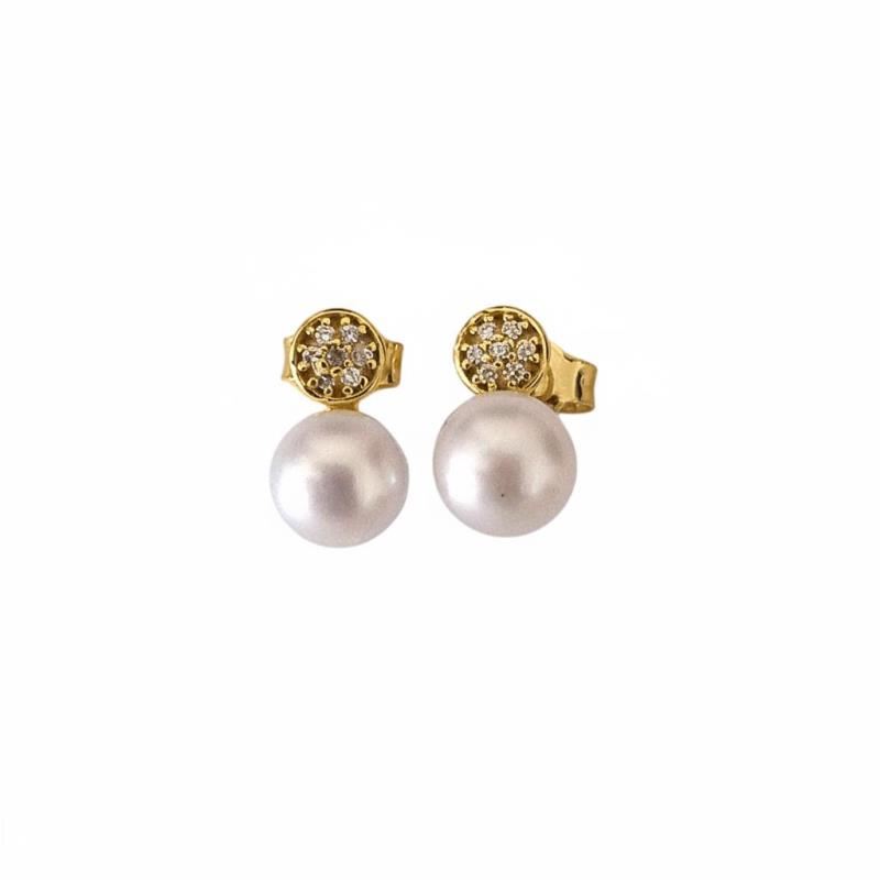 PENDIENTES DE ORO, CIRCONITAS Y PERLAS BOTON DE 5,5 - 6,0MM