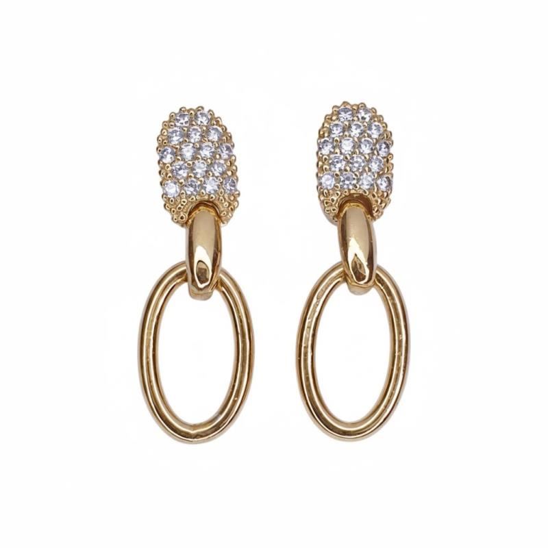 PENDIENTE ORO CON CIRCONITAS Y ASA HUECA