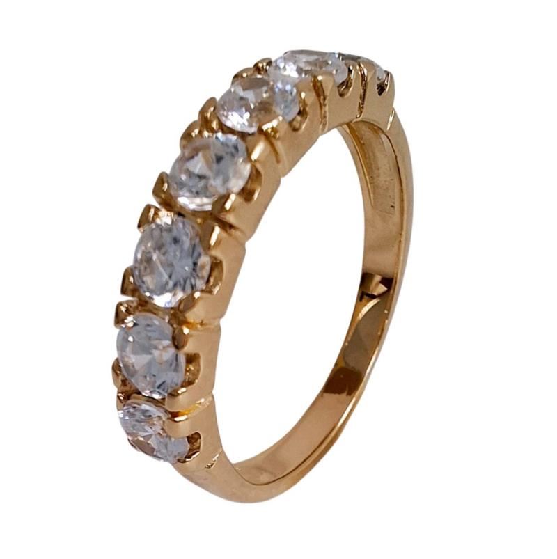 SORTIJA ORO Y CIRCONITAS, 7 PIEDRAS DE 3,0MM, CON BTES. 0,84 CTS.