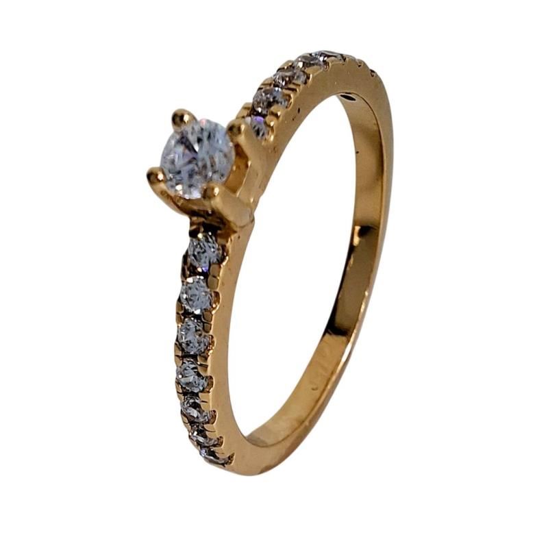 SORTIJA ORO Y CIRCONITAS, CENTRO DE 3,0MM, CON BTES. 0,33 CTS,