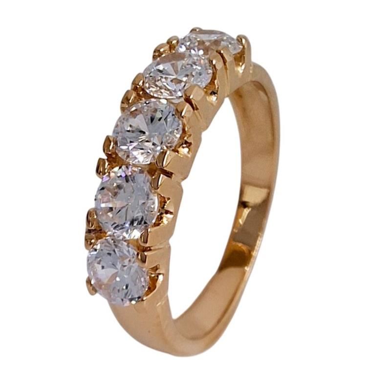 SORTIJA ORO Y CIRCONITAS, 5 PIEDRAS DE 4,0MM, CON BTES. 1,3 CTS.